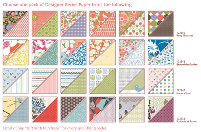 Don't forget that any one of these beautiful packs of Stampin' Up! designer series papers could be yours FREE with a £45 purchase this month. The clock is ticking on this wonderful promotion and also for the Spring Mini which will cease trading on 30 April 2012.