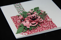 For my lovely Mum I've gone for blushing bride, garden green and rose red for my colour combo and I've used card stock, sponging, minimal amount of spritzing with water and the gorgeous mini paper stack Love Blossoms, which are 6 x 6 papers in real life not 12 x12 as printed in the catalogue. Hey we all make mistakes occasionally. The papers were my starting point and it grew from there.