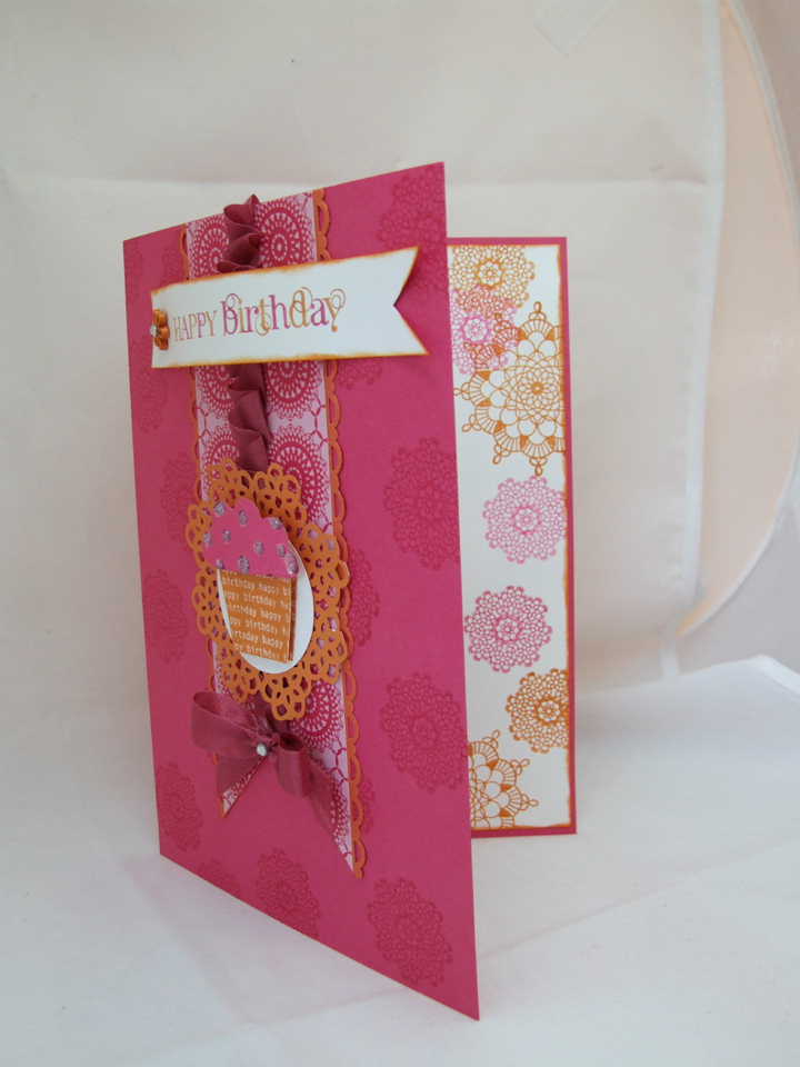 Now my card today is for a friend who celebrates her birthday tomorrow. I know she will be too busy today to check in here so it's safe to share. She likes cupcakes and so I've used the retiring set from Stampin' Up! Big Bold Birthday. I've had this set since the beginning of my demonstratorship and it seems really odd to finally see it go into retirement. Bye bye BIG BOLD BIRTHDAY. The sentiment is from Curly Cute a popular greetings set and is coloured using the matching markers.