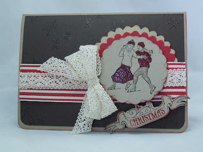 I joined the Christmas Card Club for a fortnightly challenge and to get better organised with making my Christmas cards. I never dreamt it would challenge me quite so hard! The first week was a card using more than 2 folds. You can see my card here. I thought that was a tough one to start on, but Sally has set the challenge of winter sports this time and as I'm committed to using Stampin' Up! products I found I didn't have a single winter sport set, so thanks to my fellow demonstrator Bekka I had some stamped skaters to play with. Here's my first card which I wasn't really happy with, but my daughter ooh'd and ahh'd so I've decided to share it with you.