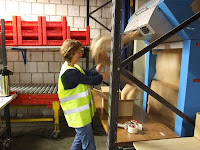 Once the orders are collected they are checked here with a computer chip in each box reporting to the printer for a delivery notice and a quick check that there are the correct number of items in the box.