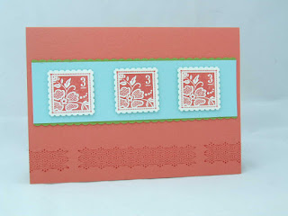 Fresh Vintage sale-a-bration set was very popular and especially when used with the 2011-2013 in colours of pool party, calypso coral and lucky limeade. It also lets the lucky owners of it make great use of the new limited time postage punch which can be found in the Spring Mini along with a co-ordinating stamp set Perfect Postage. Both available until the end of the month.